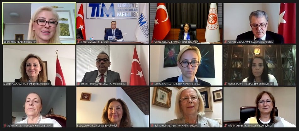 Türkiye İhracatçılar Meclisi, Ticaret Bakanlığı koordinasyonu ile Meksika, Kolombiya, Peru ve Şili’ye yönelik Sanal Ticaret Heyeti programı başladı. Kadın ihracatçılara özel olarak ilk defa gerçekleştirilen programın açılışına Ticaret Bakan Yardımcısı Gonca Yılmaz Batur, TİM Başkanı İsmail Gülle, T.C. Bogota Büyükelçisi Ece Öztürk, T.C. Santiago Büyükelçisi Gülcan Akoğuz, T.C. Lima Büyükelçisi Ali Rıza Özcoşkun ve T.C. Meksika Büyükelçisi Tahsin Timur Söylemez katıldı. Türkiye’nin kadın ihracatçılarına yönelik ilk kez düzenlenen sanal ticaret heyeti 9 Ekim tarihine kadar devam edecek.